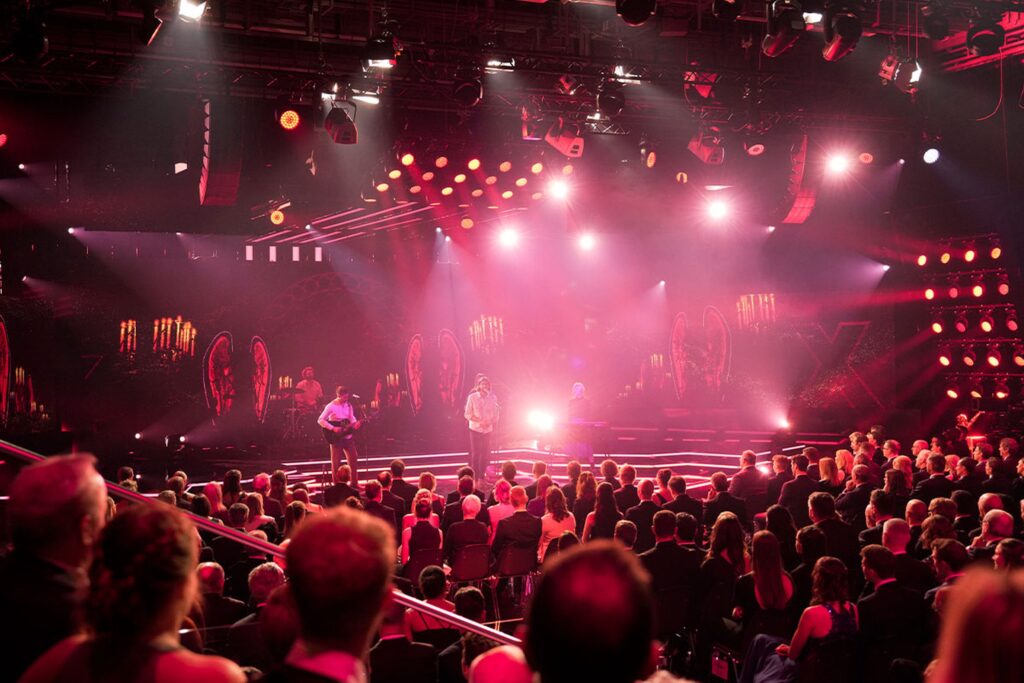 Letzten Sonntag war es wieder soweit – bei den Sports Awards 2022 drehte sich alles um die erfolgreichsten Schweizer Sportlerinnen und Sportler. Geehrt und ausgezeichnet zur/zum Sportlerin/Sportler des Jahres wurden Mujinga Kambundji und Marco Odermatt. Roger Federer erhielt den Ehrenpreis für seine herausragende Sportkarriere. Während der dreistündigen Liveshow realisierte Winkler die technische Umsetzung der Bereiche LED und Effektlicht sowie mehrere Projektionen im Apérobereich.