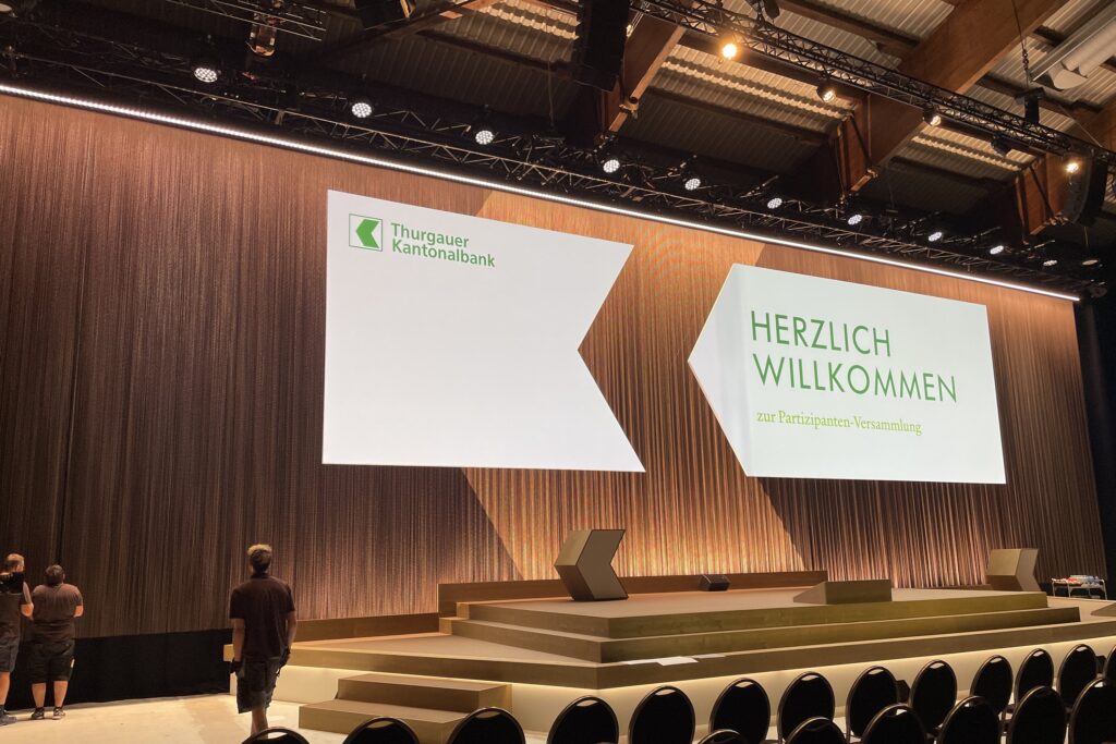 An der Partizipanten-Versammlung der Thurgauer Kantonalbank hat Winkler Livecom einmal mehr die komplette Veranstaltungstechnik geplant und umgesetzt. Winkler wurde von Flow Productions beauftragt, die Veranstaltungstechnik zu betreuen und für einen reibungslosen Ablauf zu sorgen. Die diesjährige Veranstaltung unterschied sich von den Vorjahren durch das umgesetzte neue Setup. Eines der Highlights war der Kettenvorhang, welcher von der Event Manufaktur für das Bühnenbild gestaltet wurde. Der Einsatz dieses Vorhangs verlieh dem gesamten Ambiente der Veranstaltung einen Hauch von Eleganz und Raffinesse.